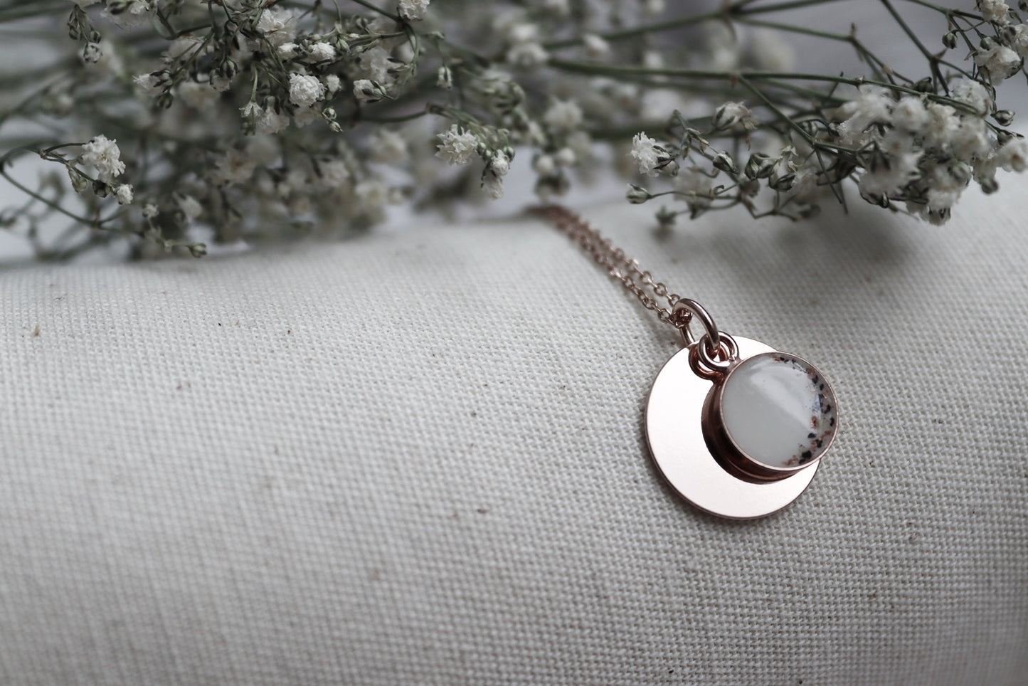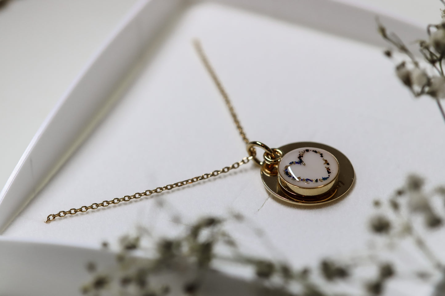 Schmuck mit Muttermilch braucht aufgrund der Konservierung der Milch etwas länger. Hier beträgt die Lieferzeit je nach Design ca. 9-13 Wochen nach Erhalt der Materialien.