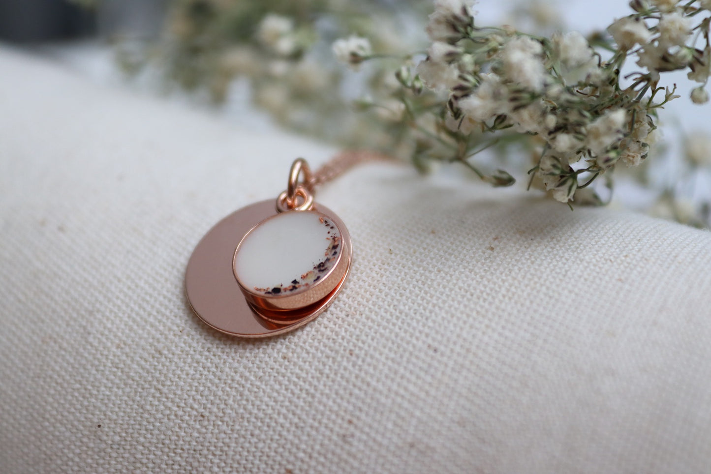 Regulärer Preis €83,92Eine 45 cm Halskette aus 925 Silber mit einem 16 mm Gravurplättchen (inklusive Standardgravur auf der Vorderseite) und einer 10 mm Fassung, optional befüllt mit Muttermilch. Ebenso können Blüten, Nabelschnur, Asche, Fell u. v. m. eingearbeitet werden. Hypoallergen, nickelfrei & ein liebevoll gefertigtes Unikat ♥
