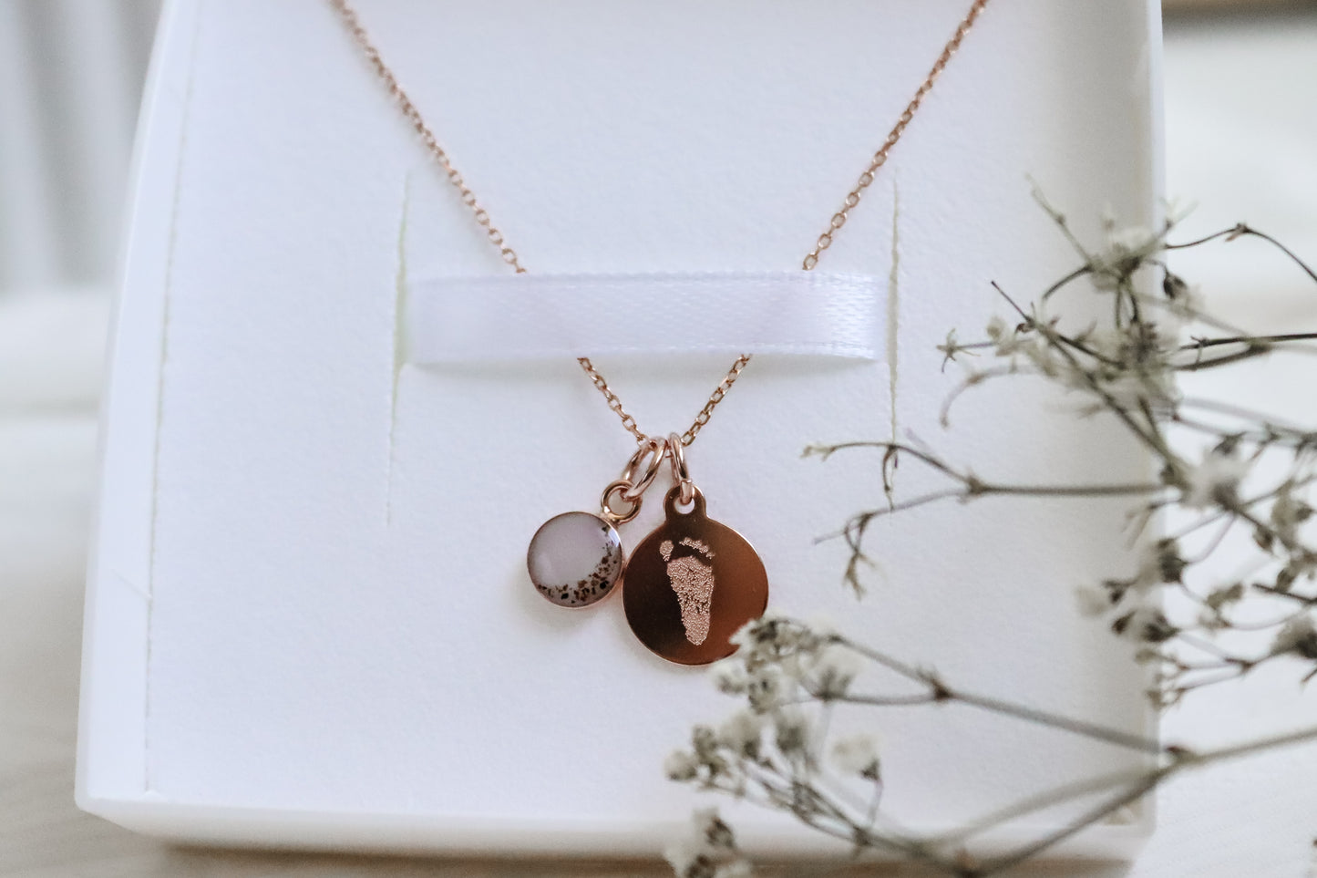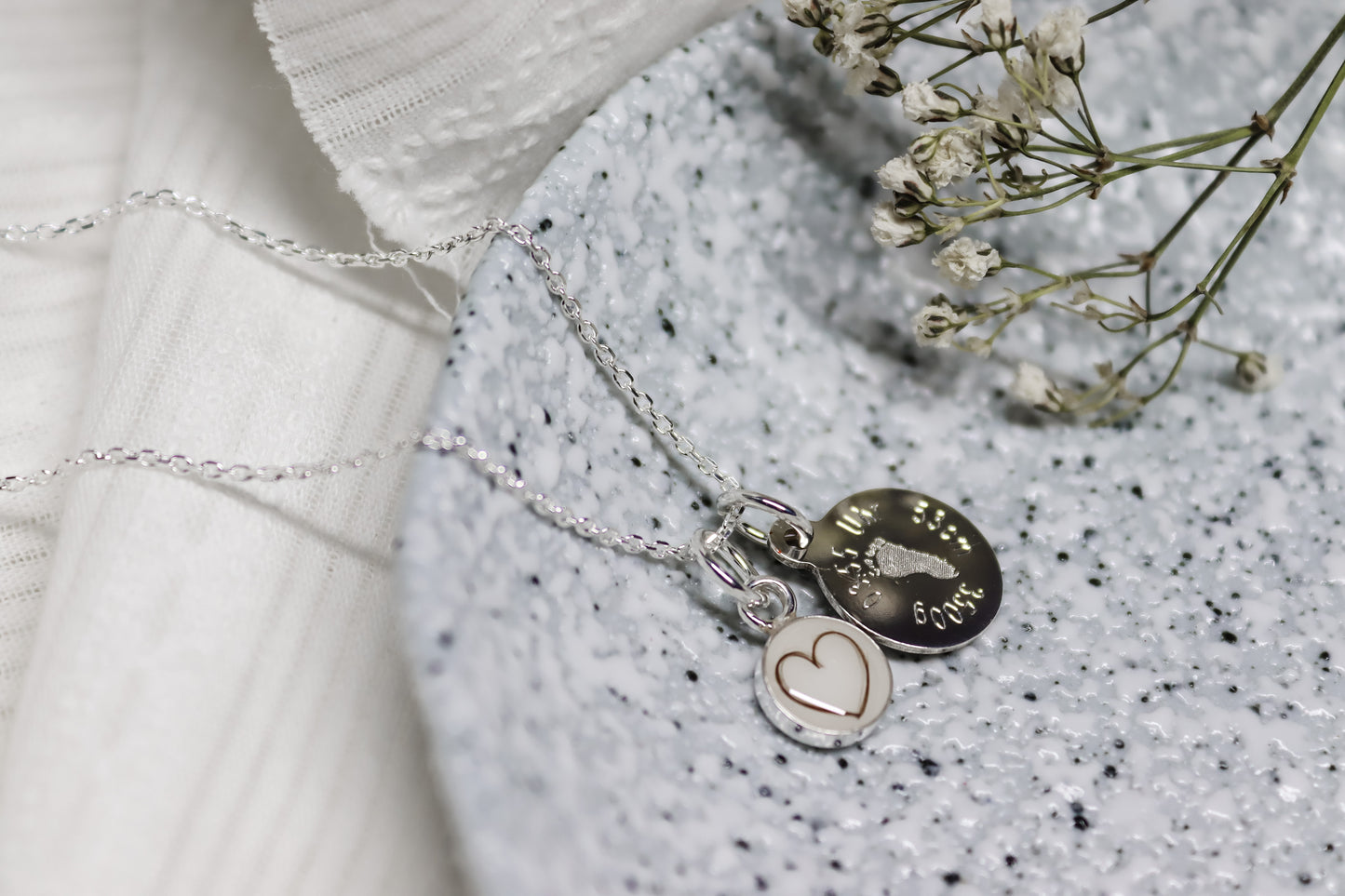 Schmuck mit Muttermilch braucht aufgrund der Konservierung der Milch etwas länger. Hier beträgt die Lieferzeit je nach Design ca. 9-13 Wochen nach Erhalt der Materialien.