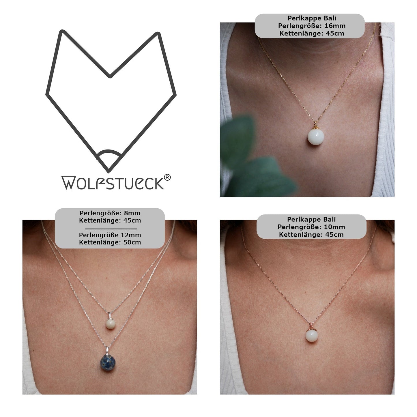 Details: 925 Silber · Roségold: 18k zweifach vergoldet · Gold: 24k zweifach vergoldet · Kettenlänge: 45 cm