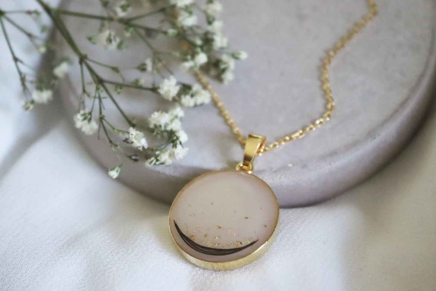 Eine individuelle Halskette aus 925 Silber – optional befüllt mit Haarsträhnen, Fell, Blumen, Muttermilch u. v. m. Für Fassungen ohne Muttermilch empfehlen wir einen weißen oder weiß-metallic Hintergrund. Hypoallergen, nickelfrei & ein liebevoll handgefertigtes Unikat ♥