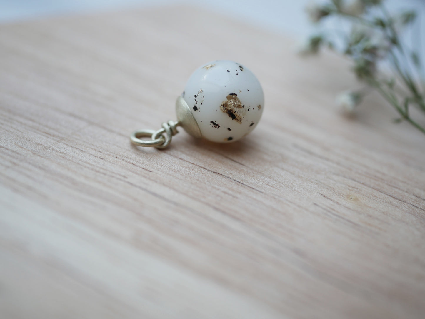 Eine individuelle Perle mit handgeschmiedeter Echtgold-Perlenkappe – wahlweise befüllt mit den Haaren eines geliebten Menschen oder Tieres. Optional können auch Blattgold oder echte, getrocknete Blumen eingearbeitet werden. Eine passende Kette kann separat dazu gekauft werden. Hypoallergen, nickelfrei & voller Bedeutung ♥