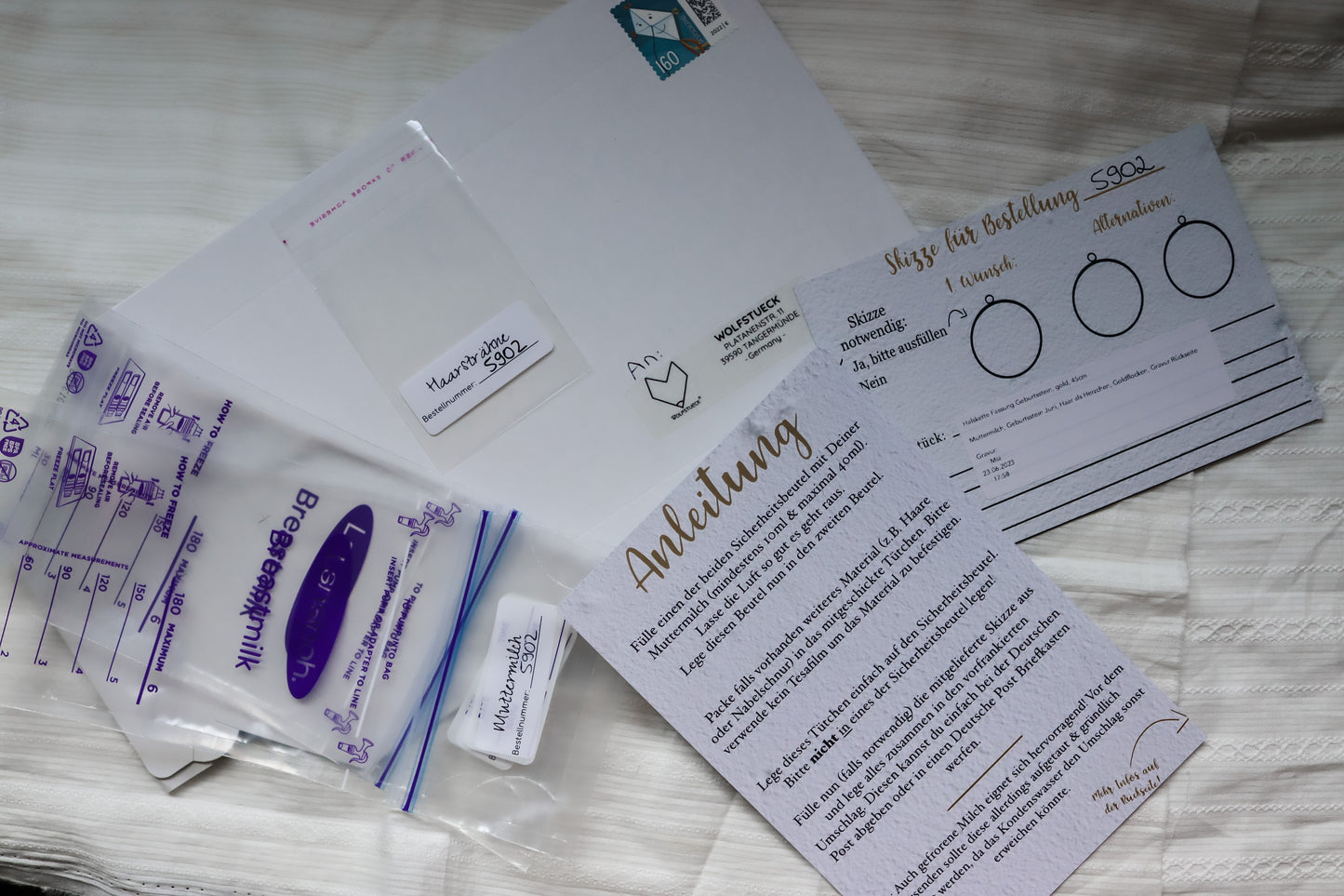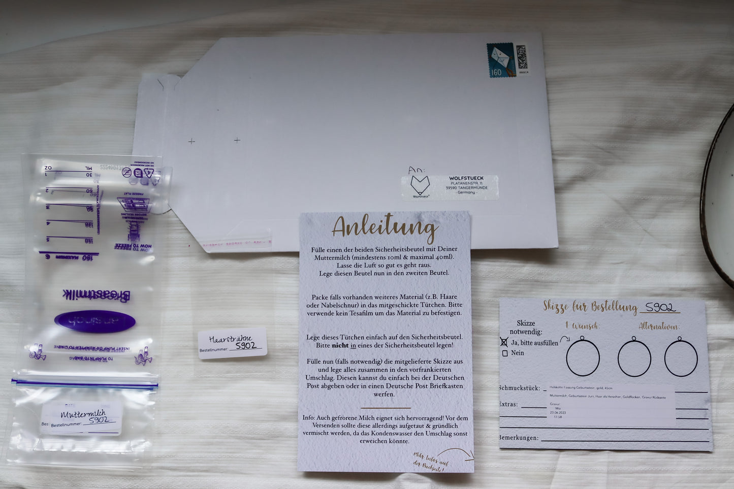 Schmuck mit Muttermilch braucht aufgrund der Konservierung der Milch etwas länger. Hier beträgt die Lieferzeit je nach Design ca. 9-13 Wochen nach Erhalt der Materialien.